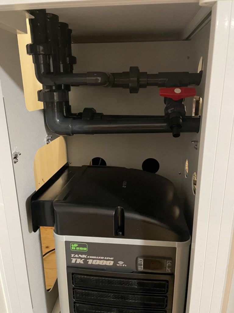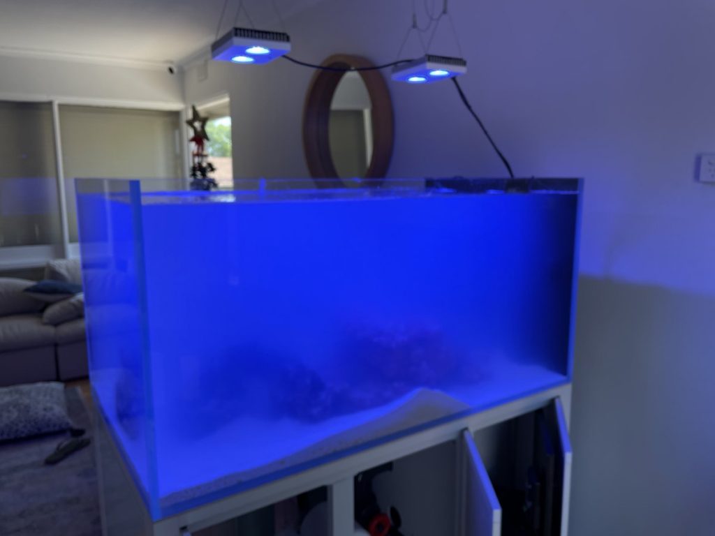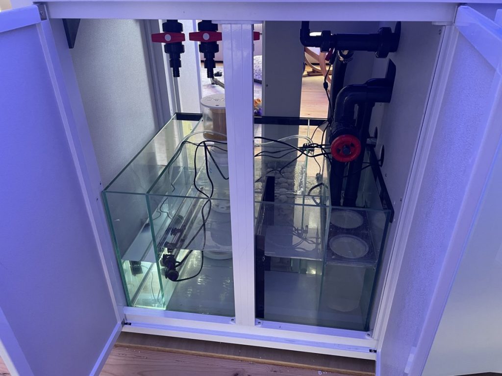- Protein skimmer is running a bit wet most of the time – I try to tweak but from what I can tell, due to the lack of stuff in the water this is probably expected and it is also braking in.