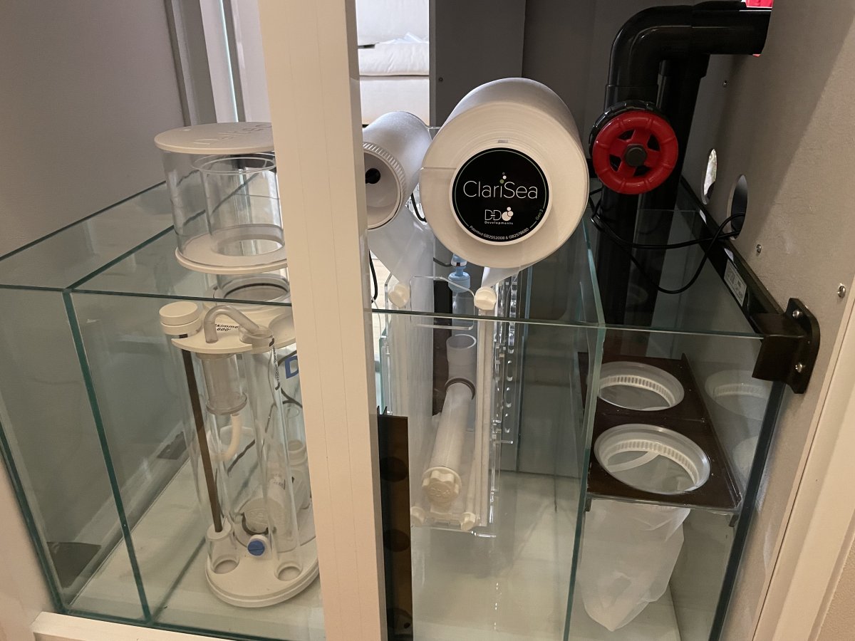 - Protein skimmer is running a bit wet most of the time – I try to tweak but from what I can tell, due to the lack of stuff in the water this is probably expected and it is also braking in.