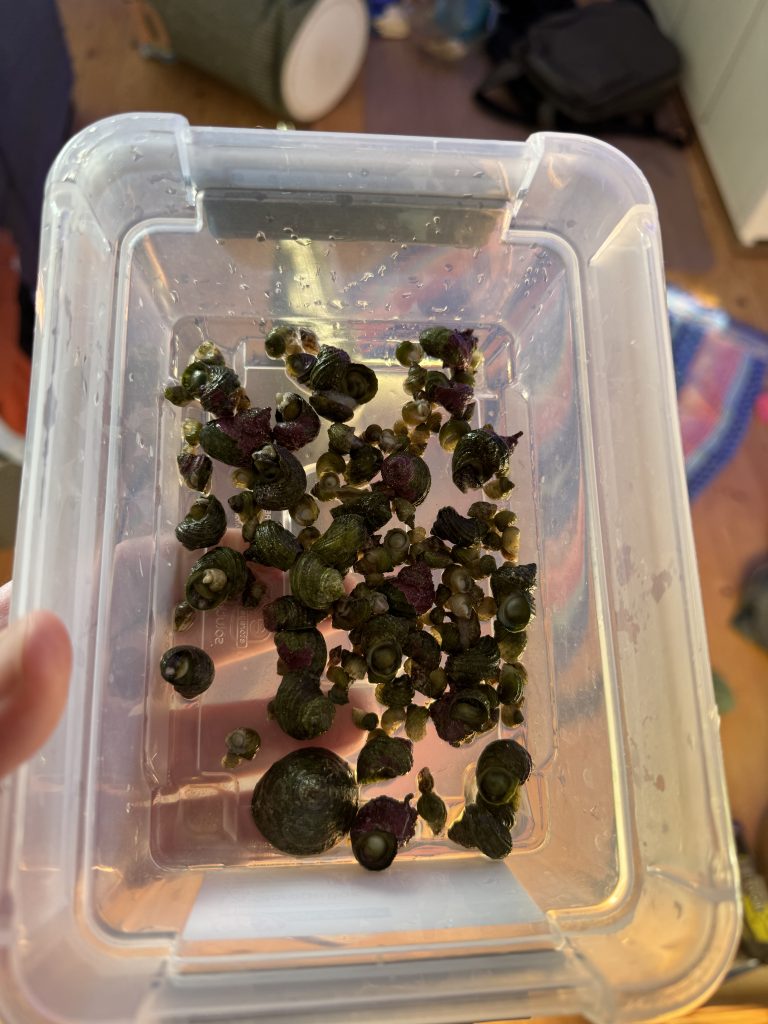 Cleaning out my frag rack and rescuing all the snails.