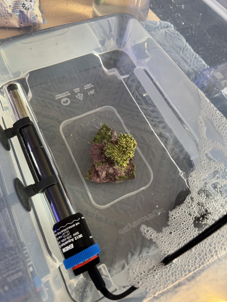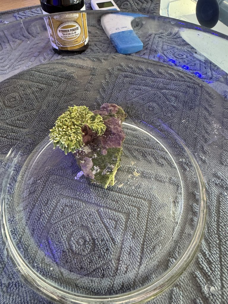 The coral came out of the bath ok and I didn’t see any indication of brown jelly disease or a strong smell of decay for the time I was treating it – so I still had hope.